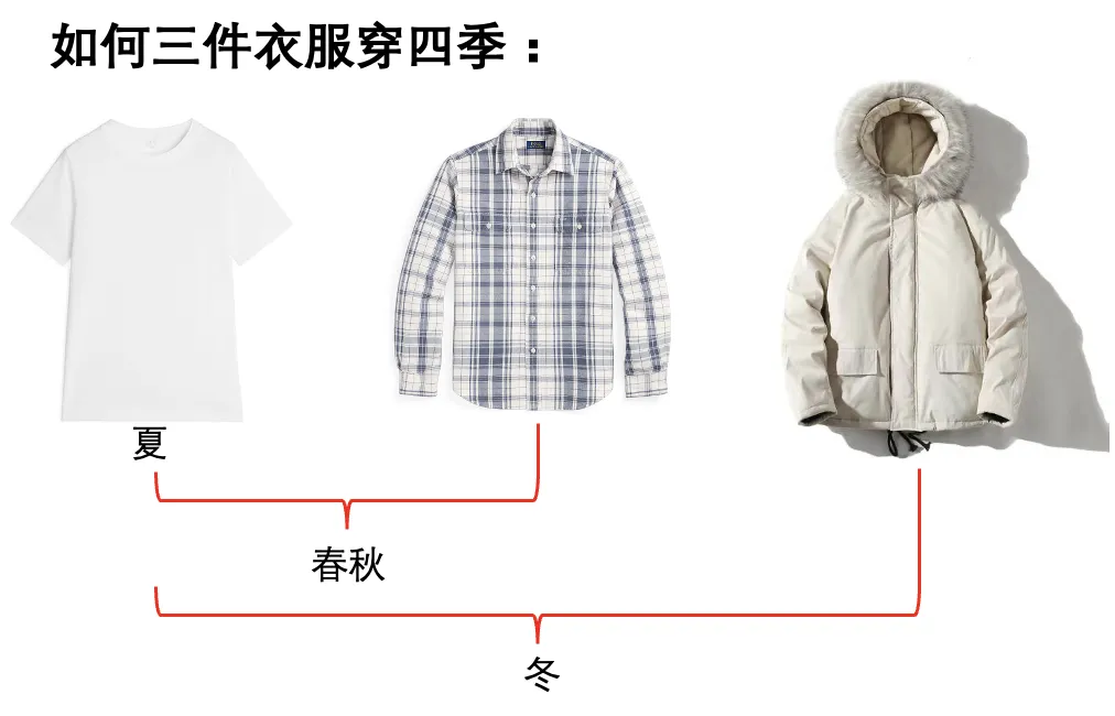 **冬天一套衣服:**300塊,一套衣服穿一冬,裏面春秋的內搭換着穿