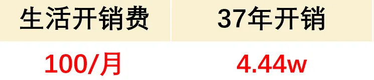 生活開銷這塊就按一個月100元算。這麼算下來,一年生活開銷就是1200,37年生活下來就是44400!不到五萬塊的事!