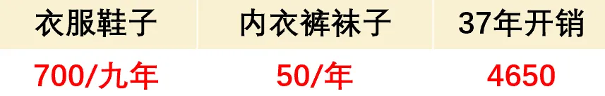 不過襪子內衣內褲還是要勤換的,這種貼身衣物可不能省,我們就按每年50塊算。