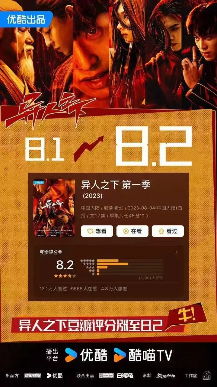 比如許宏宇的作品節奏暢快、分鏡絢麗、且腦洞夠大,故而能把《異人之下》的超現實段落拍得足夠吸睛,讓觀眾感受了一波中國都市奇幻的魅力。在許宏宇看來,跟優酷做《異人之下》不是簡單的合作,“是真的讓影視產業有一個新的變革或者啓動”。