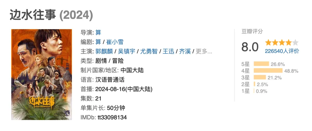 作為豆瓣評分8分、今年暑期檔的黑馬懸疑劇,《邊水往事》可謂後勁兇猛。很多觀眾至今還沒從追劇的快樂裏抽離,只能再刷一遍、在社交媒體反覆討論“沈星會不會再回到三邊坡”,喊話優酷再多整點硬菜上桌。