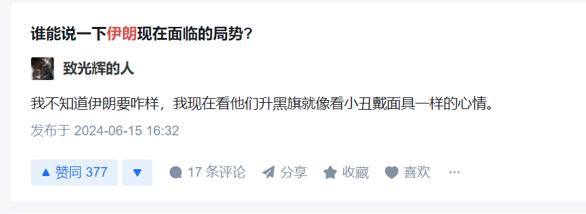 伊朗最大的問題,在我看來就是上層教士集團太慫了。既想利用哈馬斯搞出點動靜,又不敢真的和以色列幹到底。