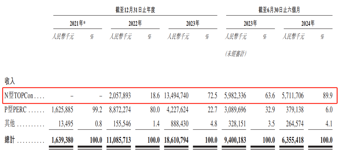 2024年上半年,公司營收63.74億元,同比下降32.35%。業績下滑主因P型PERC電池收入鋭減,僅3.79億元,同比降87.7%;N型TOPCon電池銷售額下滑4.5%至57.12億元。