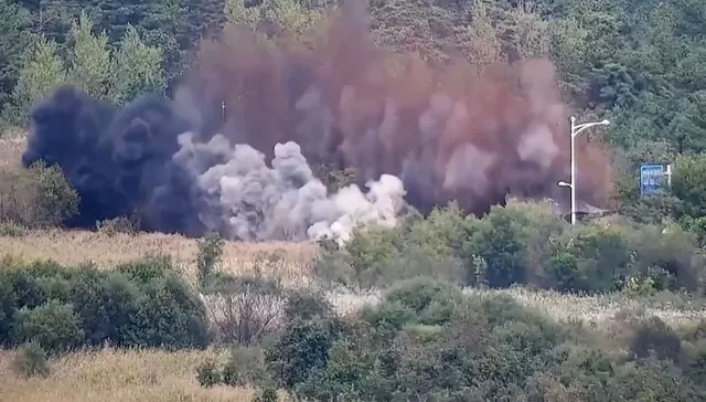 當地時間2024年10月15日,韓國,連接朝鮮和韓國的通路發生爆炸。(圖源:視覺中國)