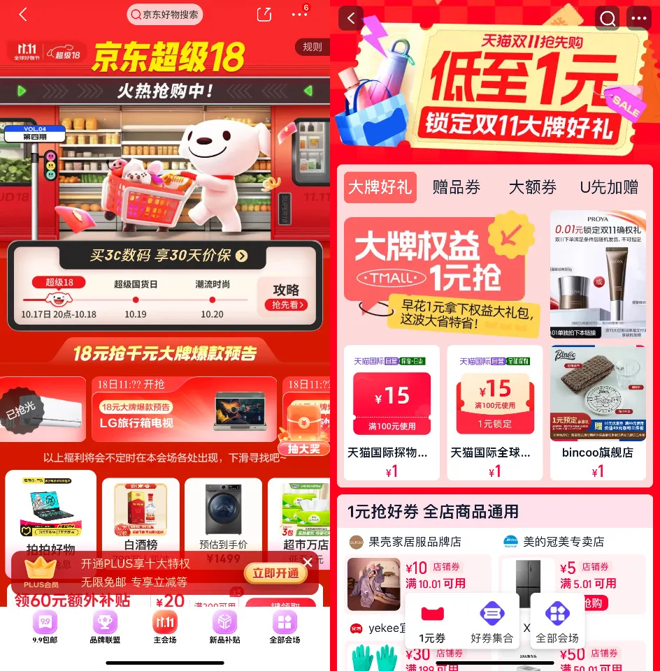 10月14日晚上8點,淘寶、天貓、京東等電商平台紛紛啓動今年的雙11活動,比去年提前了10天左右。