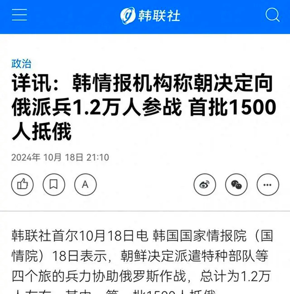 據韓聯社10月18日報道,朝鮮決定派遣其精鋭的第11軍團(又稱“暴風軍團”)中的四個旅,共計1.2萬名特種兵前往俄羅斯支援。這一消息迅速引起了韓國總統尹錫悦的高度重視,他緊急召開會議,並強調不能對此事袖手旁觀,將與國際社會共同採取一切必要措施來應對。