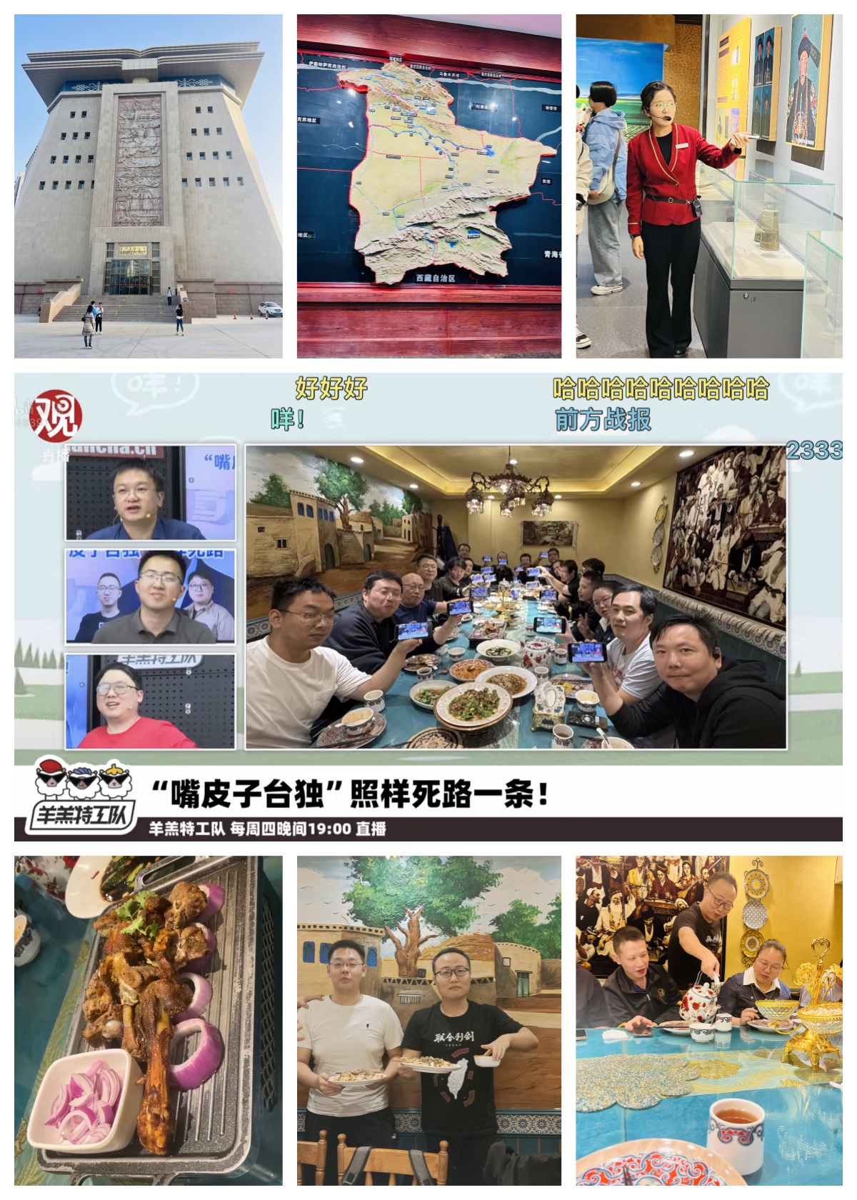 12號吃玩早飯坐車去馬蘭軍博園,路上是山區沒信號。軍博園是馬蘭基地廢棄的生活區改建的,是老賈小時候生活過的地方,揚基做“黑”導遊。展覽館、將軍樓、防空洞。然後大巴去一座酒莊吃午飯,小自助就幾個菜和抓飯。後面逛完酒莊博物館,晚上回庫爾勒的酒店入住。吃完飯就是萬眾期待的“基賈炒飯特別篇”。按原計劃是13號上午的,但不少人機票是13號中午提前錄了。在茶館錄完,沒盡興的十幾個人準備再去吃烤肉續上一段,在路邊等車的時候路過的巡警同志還來問了一下。十幾條壯漢、晚上、新疆,觸發關鍵詞了屬於是。
