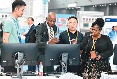 5月22日,第27屆全國發明展覽會·“一帶一路”暨金磚國家技能發展與技術創新大賽在河北省石家莊市舉行。圖為外賓在展覽會現場參觀(圖源:人民日報)