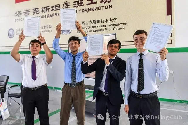 2024年7月3日,在塔吉克斯坦首都杜尚別,魯班工坊赴華留學生展示錄取通知書 (圖源:新華社)