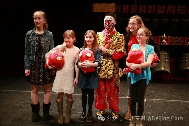 2019年2月14日,在美國馬斯卡廷,當地觀眾在演出結束後與扮演孫悟空的中國國家京劇院演員合影。當晚,由湖北省歌劇舞劇院編鐘國樂團和中國國家京劇院一團的藝術家們聯袂奉獻的“歡樂春節”大戲在這裏上演 (圖源:新華社)