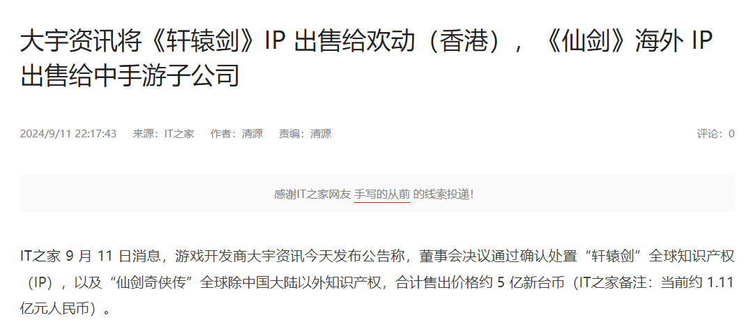 前段時間,仙劍IP被出售,易主之後還何談情懷。