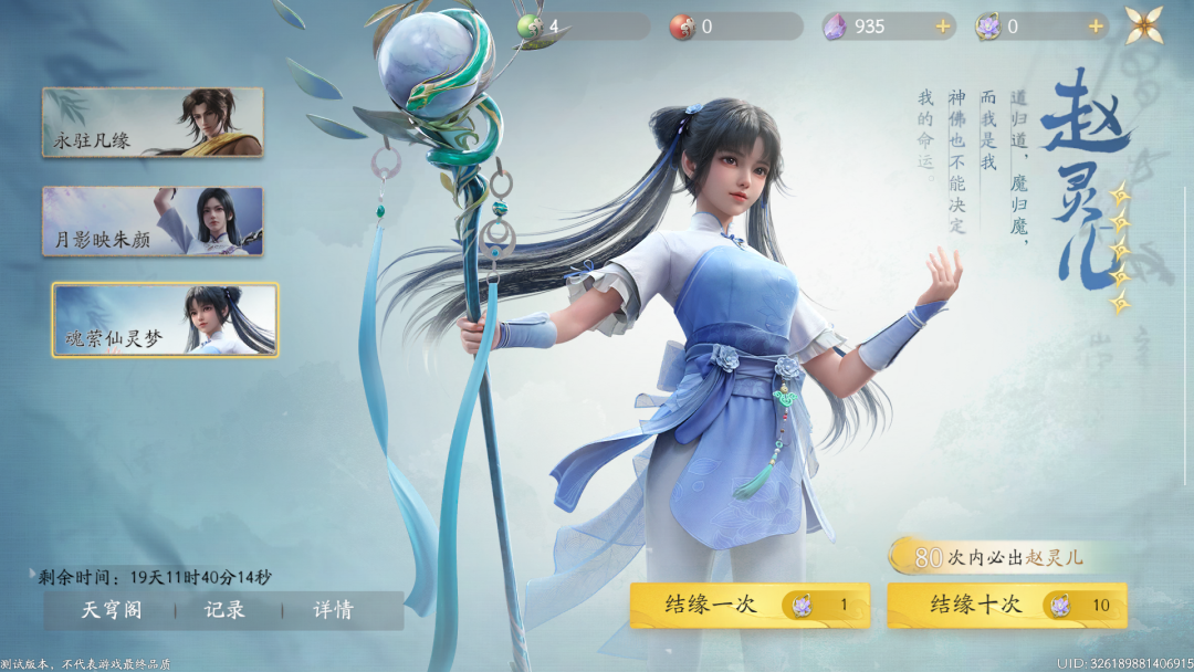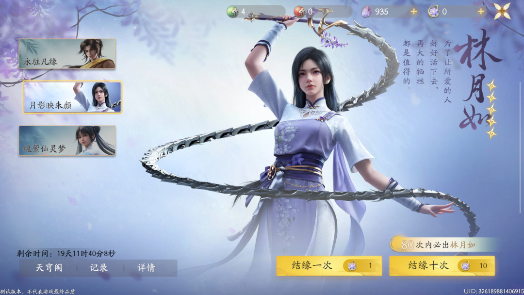 而測試期間的限定卡池分為林月如、趙靈兒。