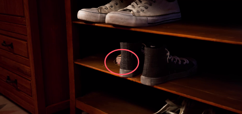 但是下個鏡頭,他又把那沓錢偷偷塞在了林家的鞋櫃裏。