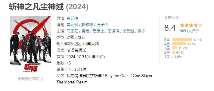 豆瓣開分8.1,一邊更新,一邊連續上漲,當前豆瓣評分8.4。