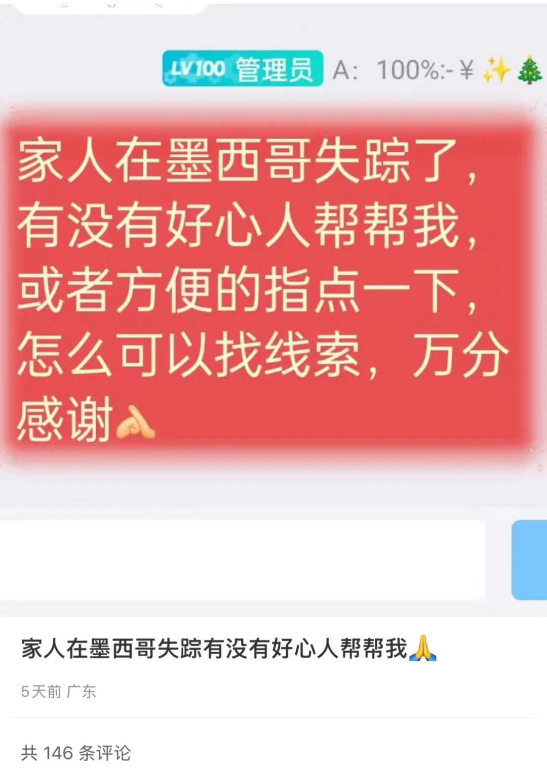 在小紅書等社交平台上,也不時可以看到有人發帖稱,家人在墨西哥失蹤了。而這種情況下,即使是當地警方也可能無能為力。