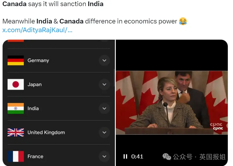 “笑死,加拿大嘴上説着要制裁印度,轉頭一看經濟體量還沒印度大。”