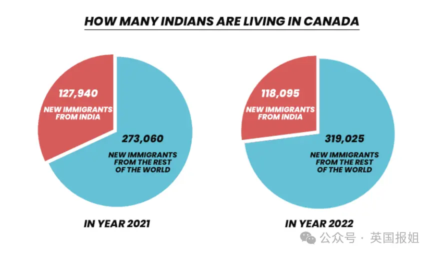 (2021、2022年印度移民佔加拿大移民總數比例都超過25%)