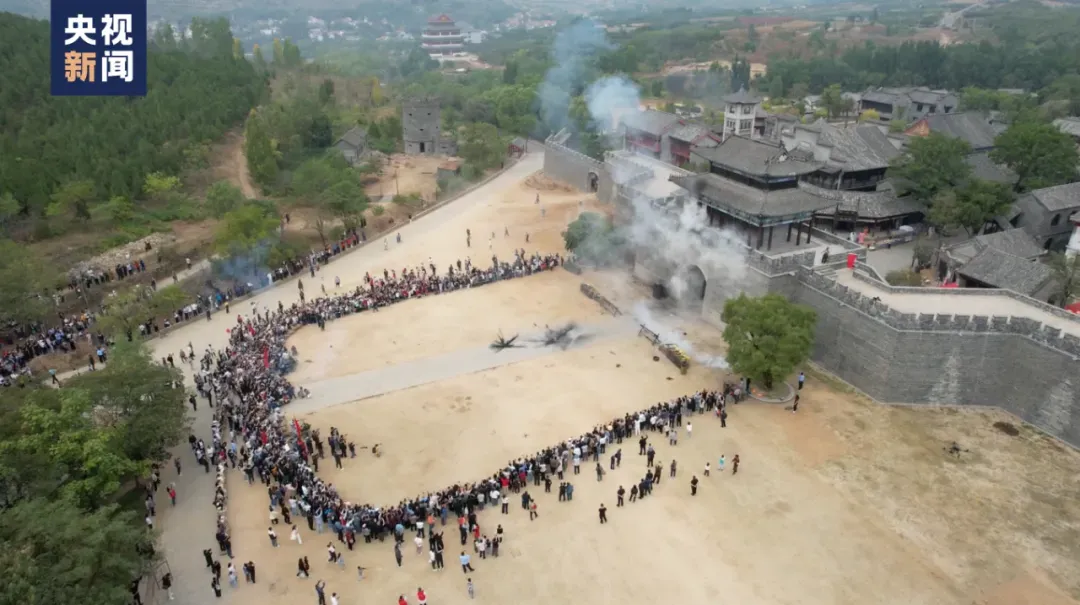 每場體驗有3000多名遊客作為“報名參軍”的羣眾進入景區,他們先參與“戰前動員”,然後三支八路軍連隊彙集到城牆下,在團長的帶領下向“縣城”發起總攻。