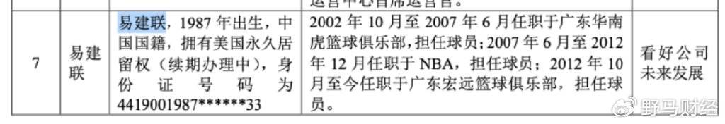 易建聯身份信息與《招股書》一致