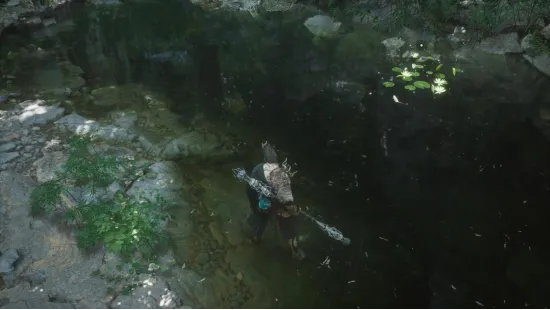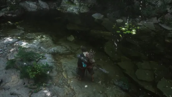 《黑神話》開光追的下圖,水體折射倒影效果驚人,上圖未開光追