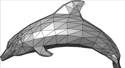 一個三角形網格,要存儲頂點的3D座標和三條邊,頂點的順序可以區分正面與反面。還有一些其它性質,如法向量、材質屬性。