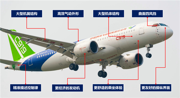 C919 作為一架大型的國產幹線客機,可以比肩空客的 320 和波音的 737。