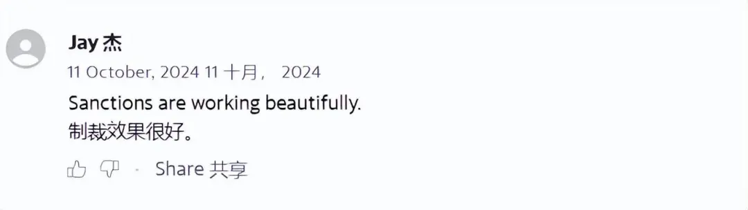 “能看得出來,美國對俄羅斯的制裁效果不錯,從市場到工廠,全跟着姓了中。”