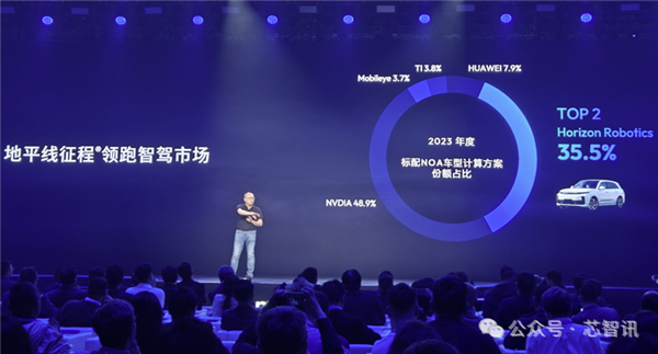 根據第三方機構的數據顯示,在2023年自主品牌乘用車標配前視一體機計算方案市場,地平線拿下23.7%的市場份額,位居第二,僅次於Mobileye。在2023年標配NOA車型計算方案市場,地平線也拿到了35.5%的市場份額,僅次於英偉達,位居第二!