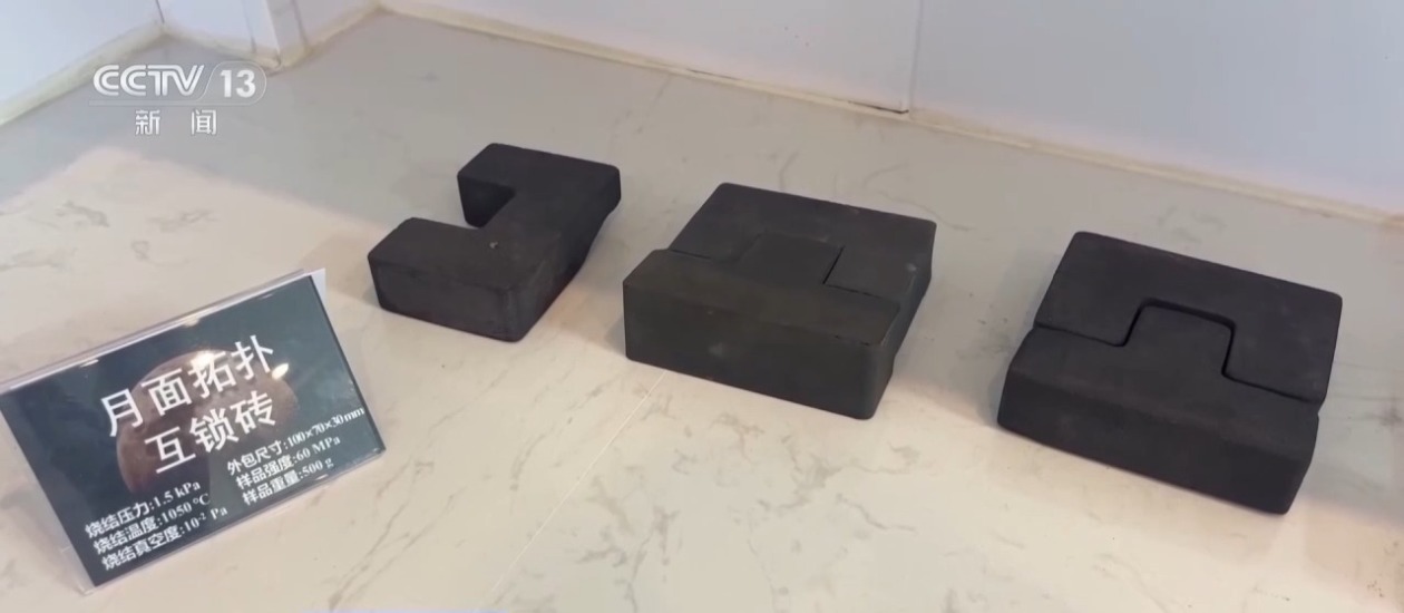 國家數字建造技術創新中心、華中科技大學教授 周誠:模擬“月壤磚”的強度比我們地球上用的紅磚、青磚等要高很多,我們看到的這兩塊磚呈現的是榫卯結構,有利於在未來的月球基地的建造過程中,我們採用這樣的結構形式進行拼裝建造。