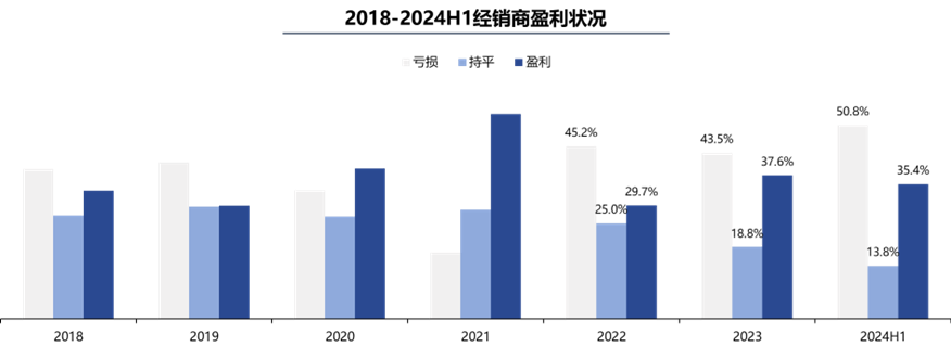 中國汽車流通協會數據顯示,2024年上半年,只有35.4%的經銷商能夠實現盈利,50.8%的經銷商處在虧損的狀態。此外,供應商的收款問題也十分嚴峻。以銷量龍頭比亞迪最新的二季度財報為例,財報顯示,截至上半年,比亞迪應付賬款高達2075.17億元,資產負債率高達77.47%。