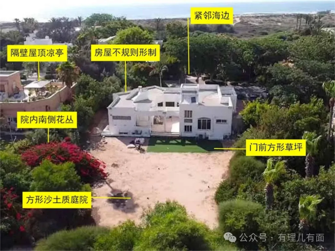 據説,這座住宅位於以色列凱撒利亞定居點北側,是一座二層獨棟別墅,外層塗為以色列人傳統喜愛的白色,院子裏種植着觀賞花木。
