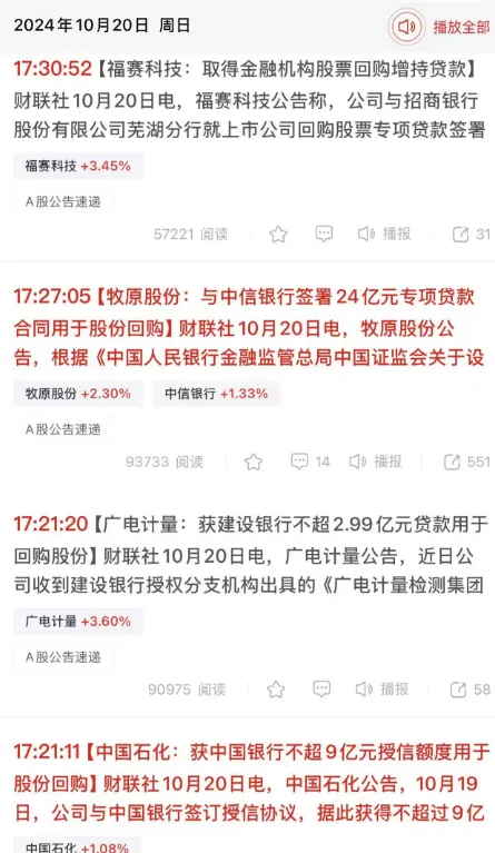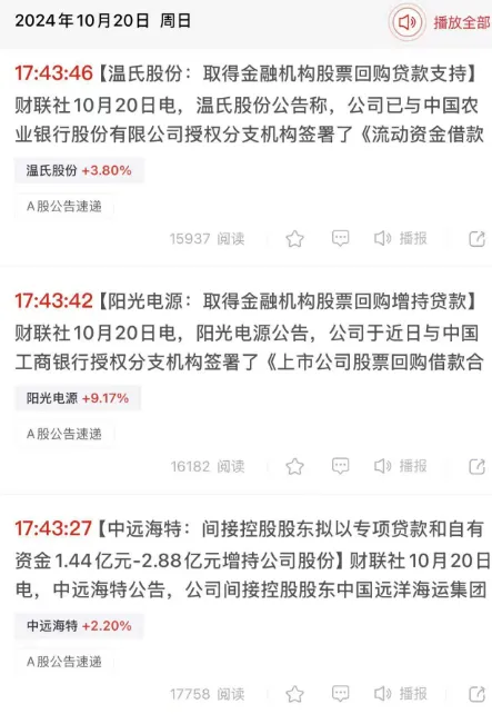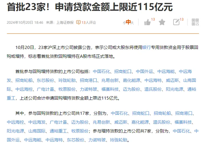 然後就是鋪天蓋地的上市公司宣佈自己獲得了這批股市專項貸款的授信額度。