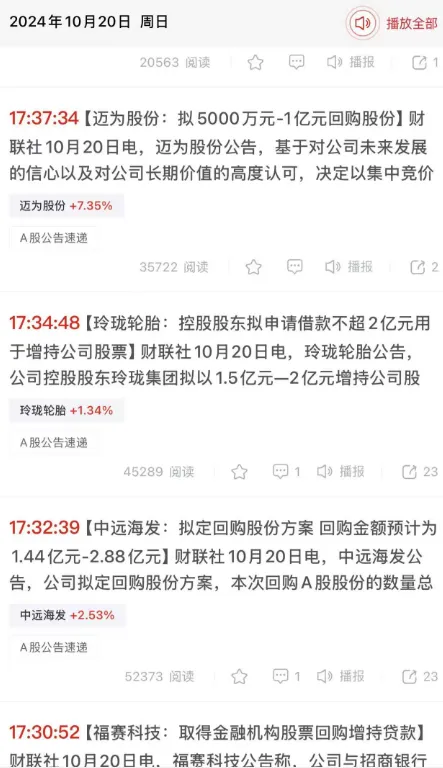 10月20日週日下午5點,中國股市開盤前,密集的信息突然刷屏。