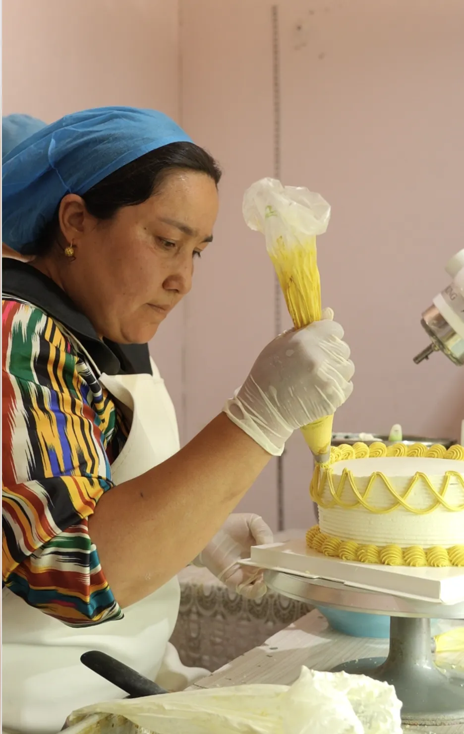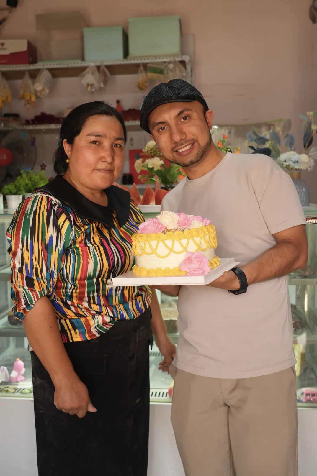 在婆婆的幫助下,布海麗切木以自己一直都想要嘗試的糕點製作為起點,隻身前往烏魯木齊學了5個月烘焙技術。回到村裏後,她開始在家裏給親戚和鄰居們做一些蛋糕、點心,賺到了一些生活費。