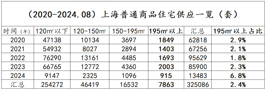 其中195平以上的大户型套數僅有2.4%,不過在2024年大户型供應比例得到顯著提升