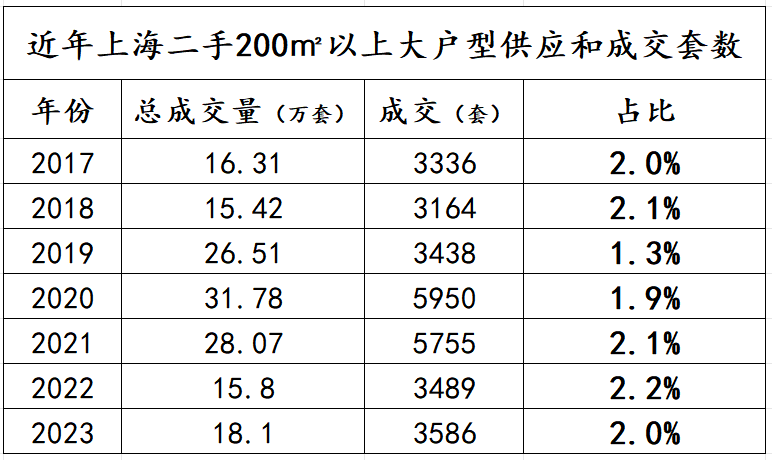 我把近年上海二手200㎡以上大户型的成交套數也拉出來給大家參考參考