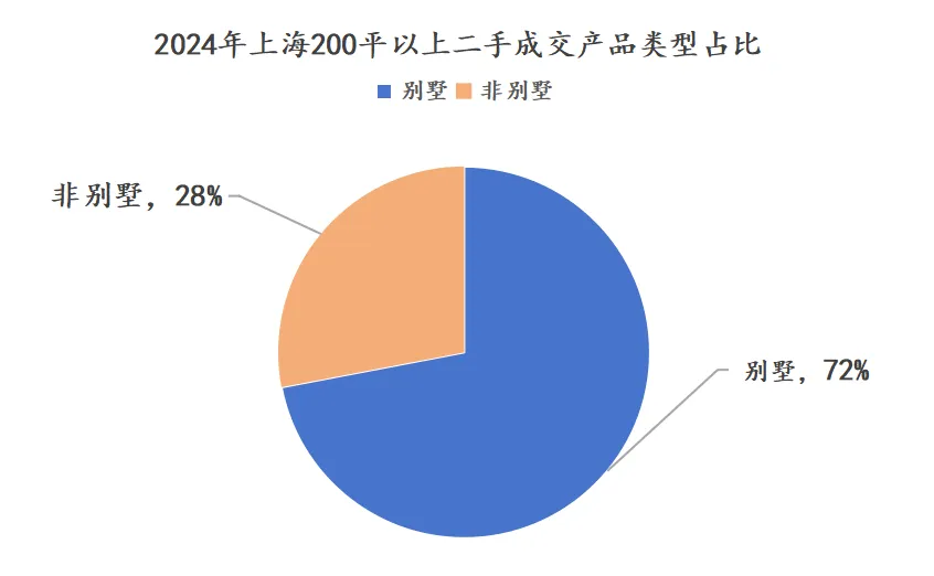 在今年上海成交的200平以上產品二手房裏面,有72%的比例是別墅產品