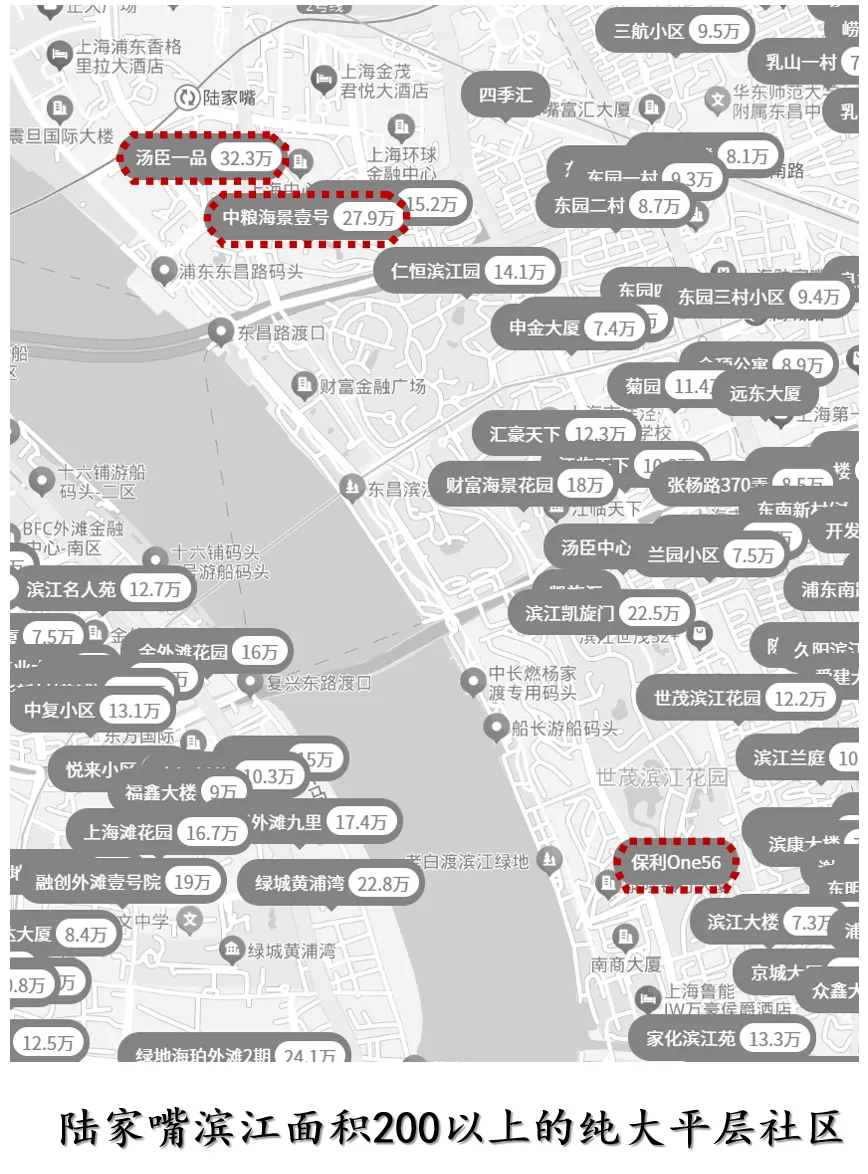 的確,在陸家嘴濱江沿岸大量供應着200平以上的大户型