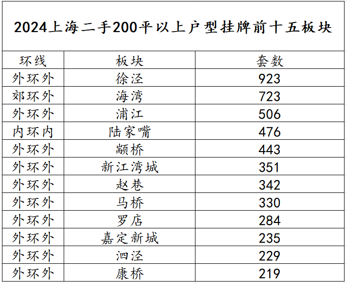 要麼大概率去上海外環外買大別墅,因為今年200平掛牌出來的前十五板塊裏