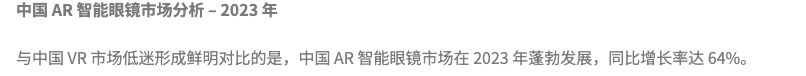 AR 的確是一個可能的未來。Counterpoint Research 數據表明, 2023 年中國 AR 智能眼鏡市場同比增長 64% 。