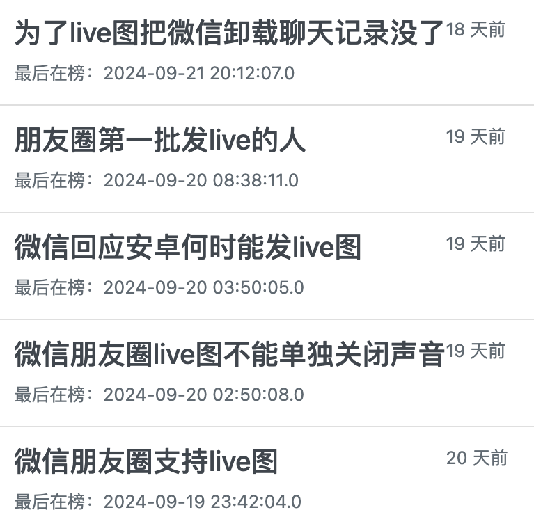 儘管還不支持安卓,也儘管 Live Photo 出了快 10 年,但畢竟人是微信嘛,消息一出就衝上了微博熱搜第一。