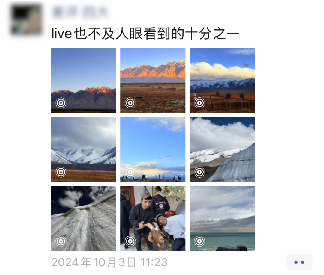 有同事國慶去了新疆,看了雪山,傳了 9 張 Live 圖。