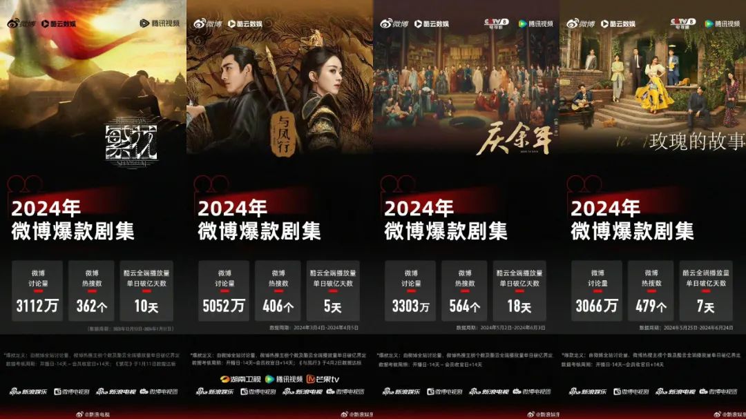 第一方面自然是“爆款多”。這裏的爆款多,不僅僅是行業和觀眾的“體感”,也有第三方平台的數據支撐。2024年,微博爆款劇集認證一共4部:《繁花》《與鳳行》《慶餘年第二季》《玫瑰的故事》,均為騰訊視頻出品;抖音爆款劇集3部:《與鳳行》《慶餘年第二季》《玫瑰的故事》,也同樣由騰訊視頻包攬。此外,2024年雲合正片有效播放市場佔有率TOP5中騰訊視頻佔據4席,且包攬前二。
