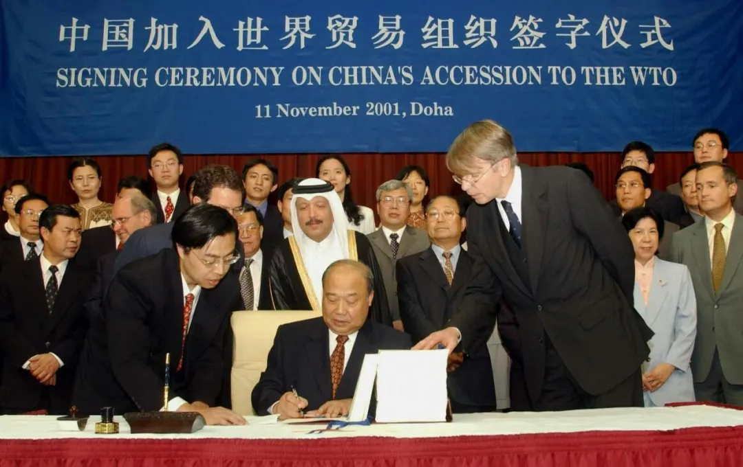 ▲2001年11月10日,在卡塔爾首都多哈舉行的世界貿易組織(WTO)第四屆部長級會議以全體協商一致的方式,審議並通過中國加入世界貿易組織的決定。