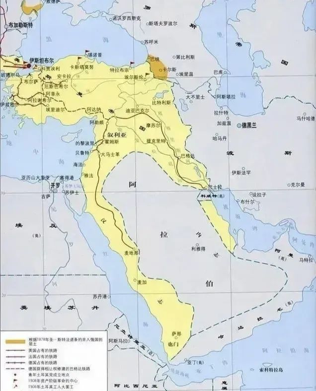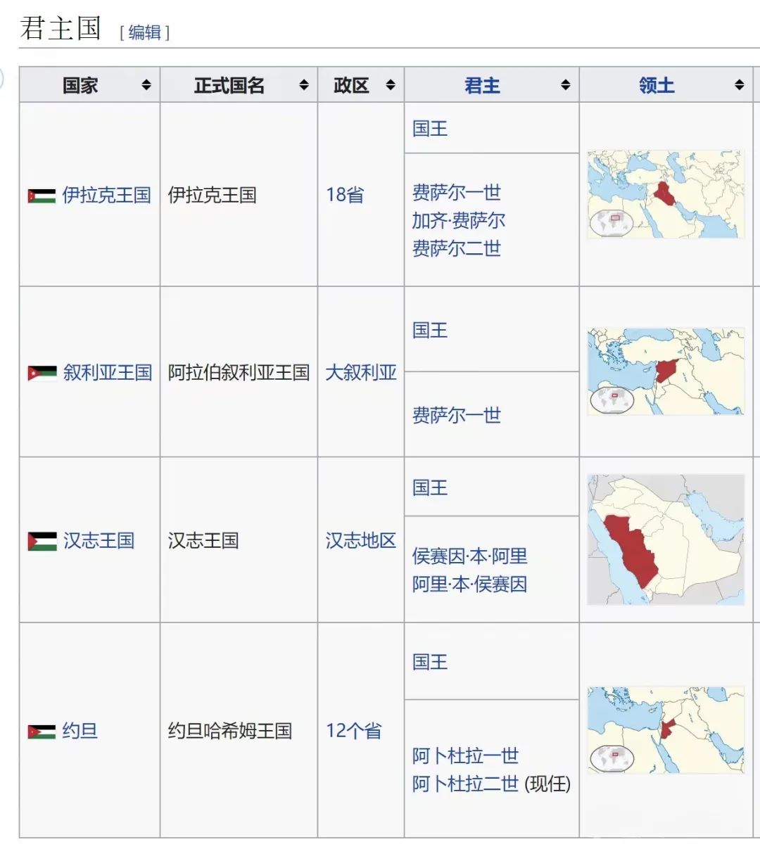 英法為利用哈希姆家族在伊斯蘭世界的影響力,其家族得以在奧斯曼治下的阿拉伯人聚居區開疆拓土,老侯賽因建立漢志王國,並自稱“阿拉伯人的蘇丹”。其次子阿卜杜拉受到伊拉克等地穆斯林的支持,三子費薩爾則率軍佔領敍利亞。