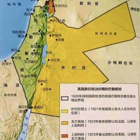 ▲約旦與巴勒斯坦同為英國勢力範圍