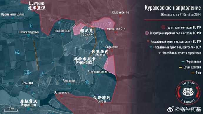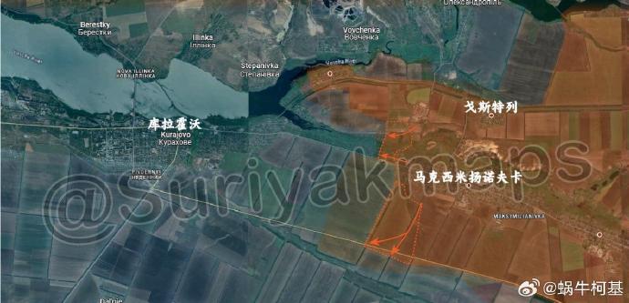 2、庫拉霍沃:俄軍繼續在馬克西米揚諾夫卡南面推進,沿高地佔領新陣地,向庫拉霍沃市區推進。