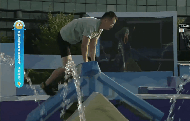 還會把礦泉水全部倒在自己頭上,然後用一頭把空瓶子甩飛。