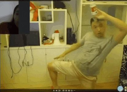 他時而突然假裝大哭,會瞪大眼睛向你敬禮,會在椅子上表演倒立,用礦泉水澆頭,會毫無緣由地把白T剪滿破洞…