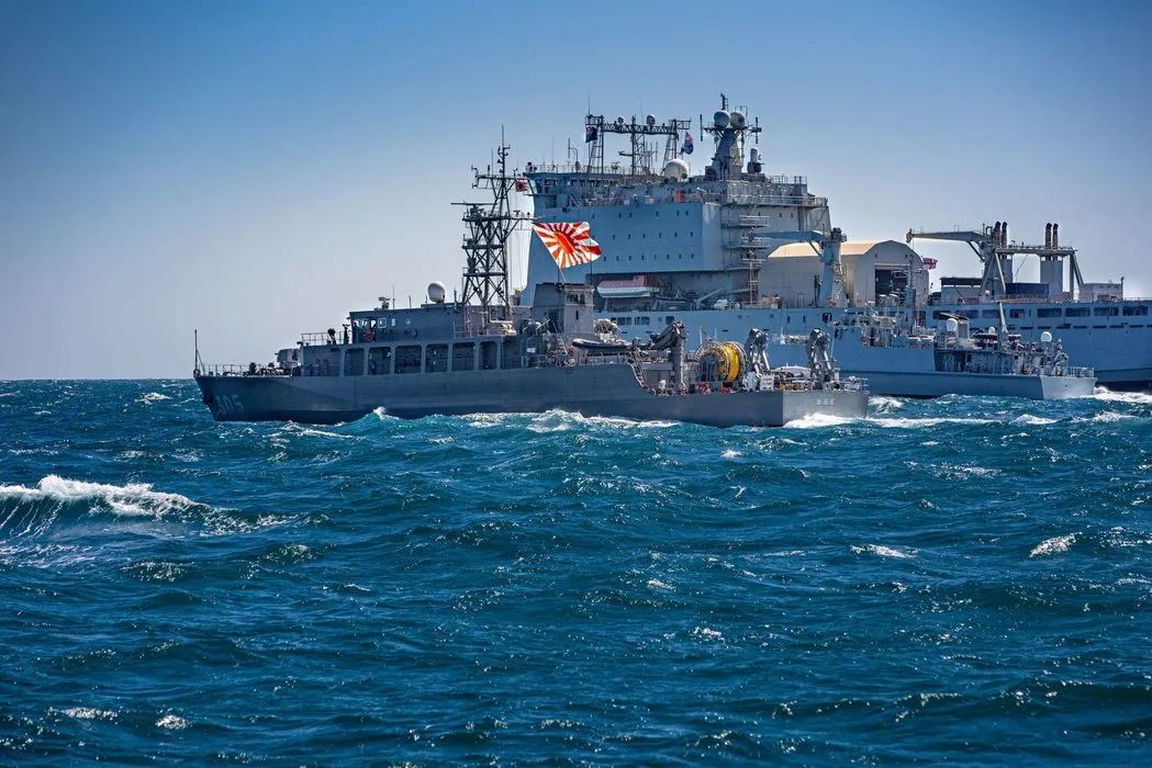 日本海上自衞隊與英國皇家海軍共同參與2022年美國海軍主辦的國際海上演習。(圖源:路透)